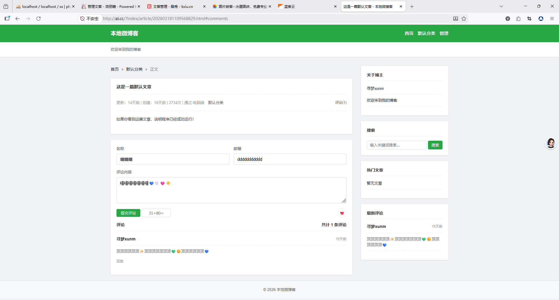 包含博主信息、热门文章、最新评论模块,方便访客快速了解博主动态与热门内容。