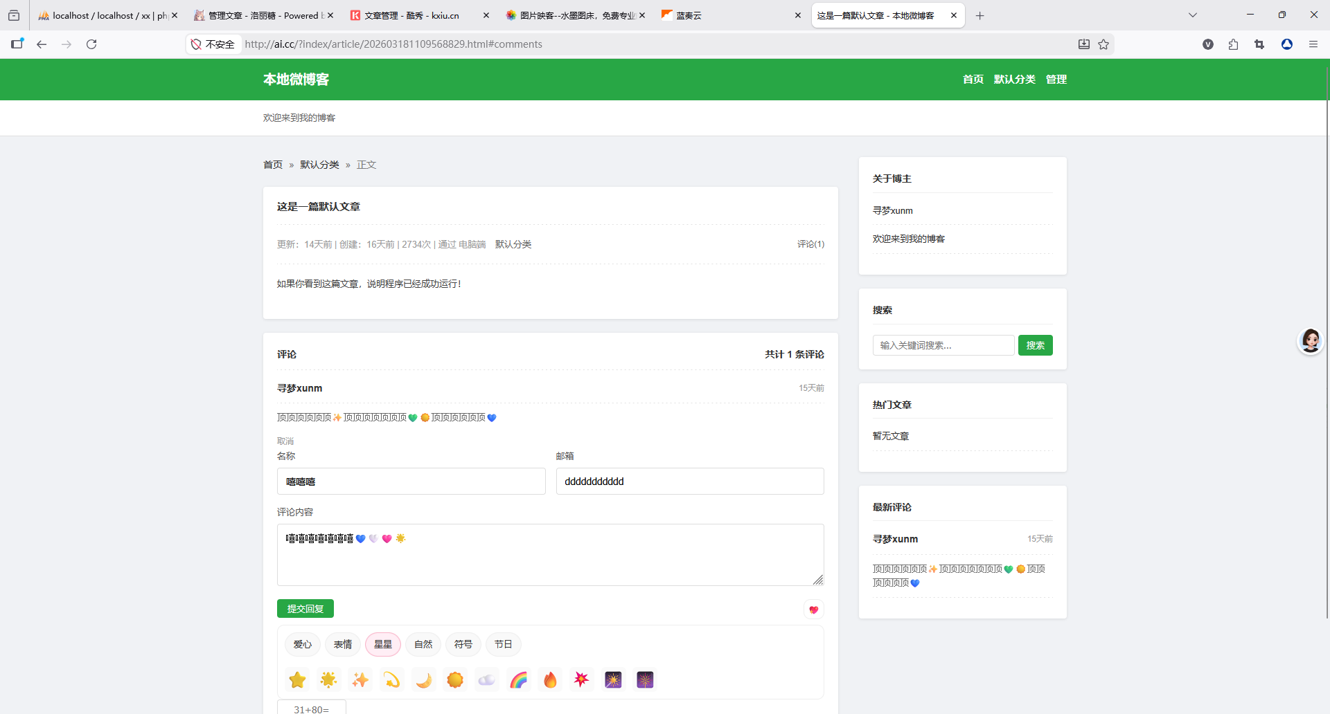核心功能完整覆盖:内容创作、互动评论、分类归档、数据备份