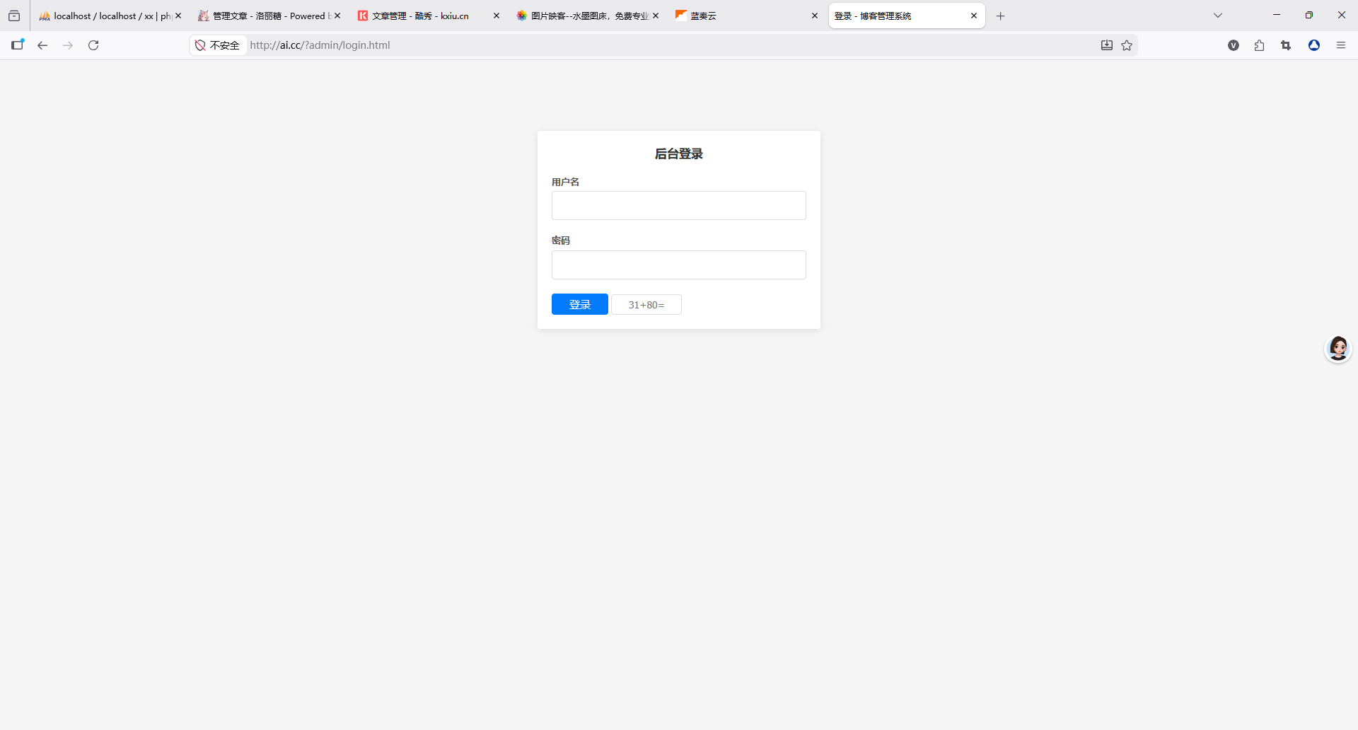 后台登录带验证码验证,保障管理权限安全。
