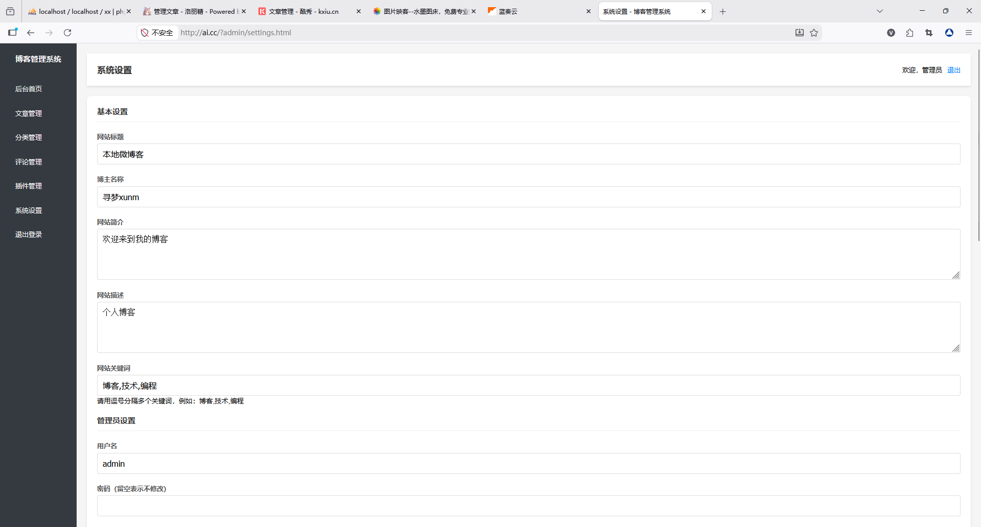 这是一套功能完整、轻量简洁的个人博客系统,同时提供面向访客的前端阅读界面和面向管理员的后台管理功能,轻松搭建属于你的内容分享空间。